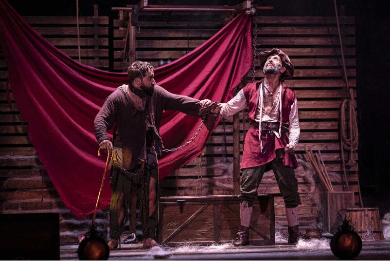 En la bodega del galeón Nuestra Señora de los Clarines que hace La Carrera de Indias en el siglo XVII, un charlatán de feria convertido en calafateador, Gaspar de Carvallo, y un morisco condenado a galeras al que han cortado la lengua, Cristóbal, sellan un acuerdo: unirse como pareja artística y amenizar a la tripulación a cambio de comida y baratijas. Pero durante los días que dura la primera etapa de la travesía, el ensayo de su primera actuación va desembocando en un intercambio de vivencias biográficas que nos hablan del trágico precio de ser diferente y disidente en un mundo que se ensaña contra cualquier atisbo de heterodoxia, de libertad. La llegada a la bahía de Santa Cruz de Tenerife, su primera escala, será la única y, quizás, última posibilidad de escapar.