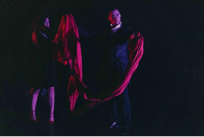 En un acantilado de Tenerife, tres versátiles jóvenes artistas se reúnen para escenificar «Crimen» de Agustín Espinosa. El descubrimiento de un cadáver surrealista genera la necesidad de resolver este enigma a través de todo tipo de textos, artistas, situaciones, juegos y reflexiones repletas de espontaneidad, creatividad, lirismo y contemporaneidad, que simbolizan los preceptos y propuestas estéticas de un surrealismo en perpetuum mobile. «En el escenario de Crimen: una experiencia surrealista» se representa lo imposible como posible, la irrupción de las fuerzas del sueño, la irreverencia y la sorpresa como factor poético. Además, se da rienda suelta en palabras, melodías y acciones a las imágenes oníricas y psíquicas extrañamente yuxtapuestas, que atraviesan la acción dramática y nos muestran un espacio abierto a una constelación de lenguajes. Esta circunstancia posibilita un efecto de fragmentación que cuestiona las ideas de unidad, totalidad, jerarquización o coherencia convencionales, ofreciendo así una escenificación innovadora, sensorial e imaginativa para el espectador. Para ver hay que cerrar los ojos.